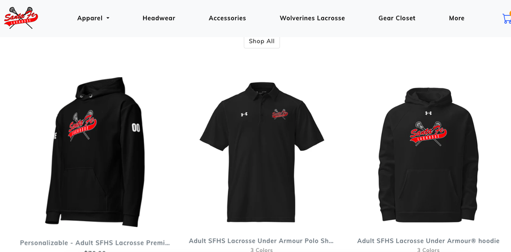 The Santa Fe Youth Lacrosse Team store is OPEN! We are excited to offer great products, solid prices, and our organization also gets a % of all purchases for our fundraising efforts.